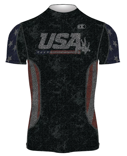 Cliff Keen proprietary Compression Gear® Lycra sublimated Compression Tops provide the ultimate comfort, performance, and durability in the wrestling world!  This sharp “USA Black Flag” design lets you hit the mats with confidence, and stand out from the rest! Â