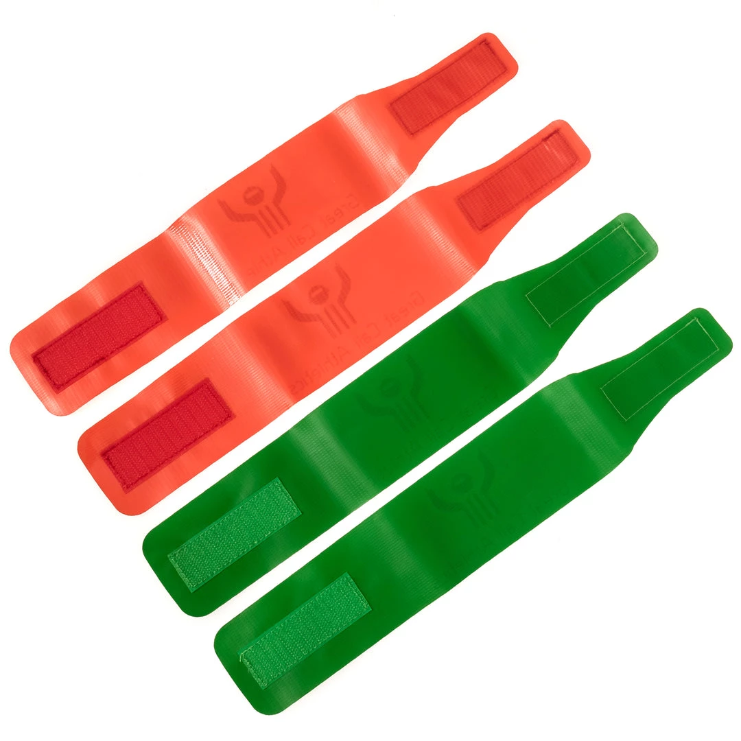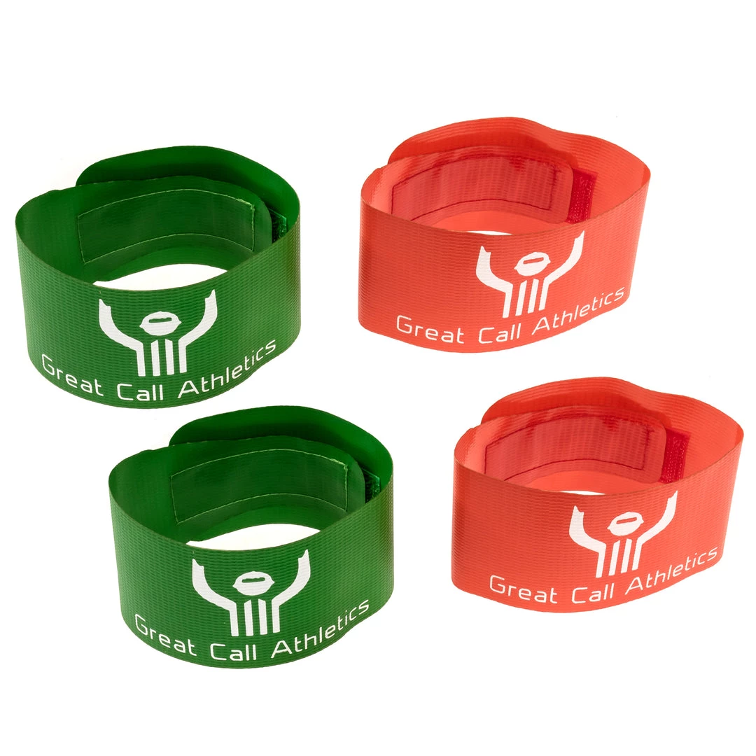 Great Call Athletics Premium Reversible Ankle Bands will outlast any other ankle bands. Constructed of soft vinyl with a hook-and-loop closure, these home and away ankle bands are easy to put on and take off and provide no distraction for wrestlers. This set includes two red, two green ankle bands.Â