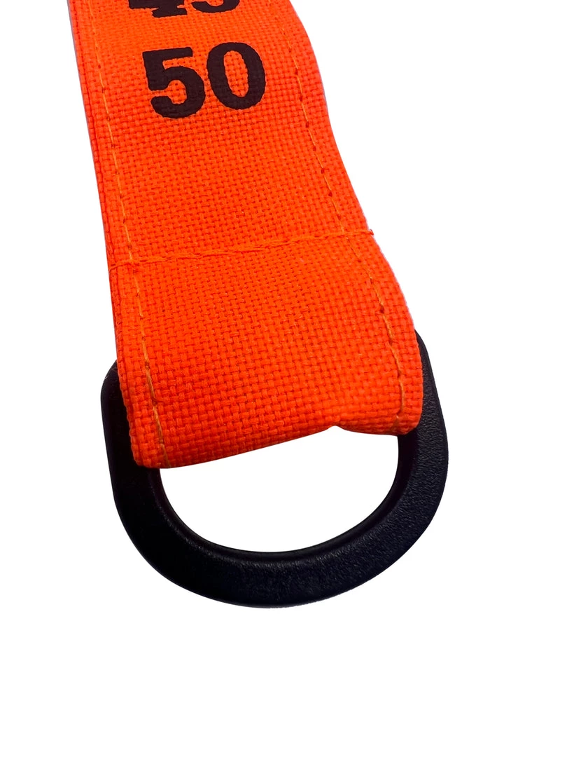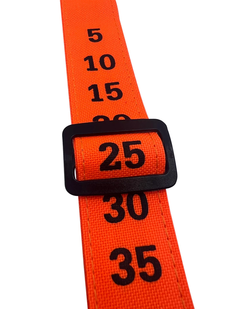 INNOVATIVE: Vivid orange belt design with a metal swivel clip featuring a plastic sliding yardage indicator!Â