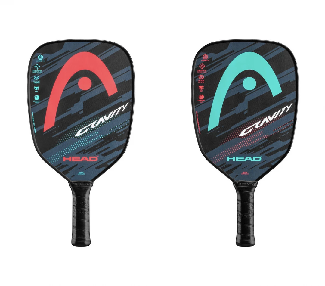 The all new Gravity model comes with a distinctinve flip design and a massive sweetspot shape that combines the great power you want with a soft impact feel you need. It combines HEAD’s latest technologies that work together for an ultimate paddle experience. The Hybrid Hitting Surface provides a truly superior blend of power, comfort, control and stability, while its HEAD’s Sweetspot Power Core takes care of the unique soft and powerful impact feel. With its Extreme 3D Spin and Handle Stabilizer Technology, the premium Gravity model is perfect for power players.Â
