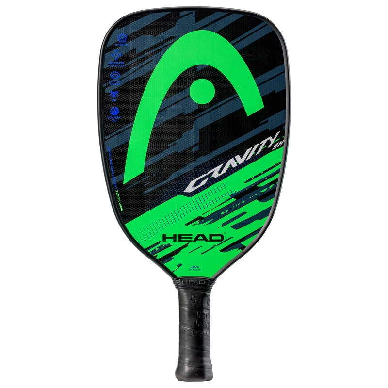 The Gravity SH features all of the same benefits as the current Gravity model but provides a larger hitting surface for a larger sweetspot and even more power and is ideal for players who hold higher on the grip. Its massive sweetspot shape combines the great power you want with the soft impact feel you need. It combines HEAD’s latest technologies that work together for an ultimate paddle experience with a crazy flip design. The Hybrid Hitting Surface provides a truly superior blend of power, comfort, control and stability, while its HEAD’s Sweetspot Power Core takes care of the unique soft and powerful impact feel. With its Extreme 3D Spin and Handle Stabilizer Technology, the premium Gravity SH model is perfect for power players.Â