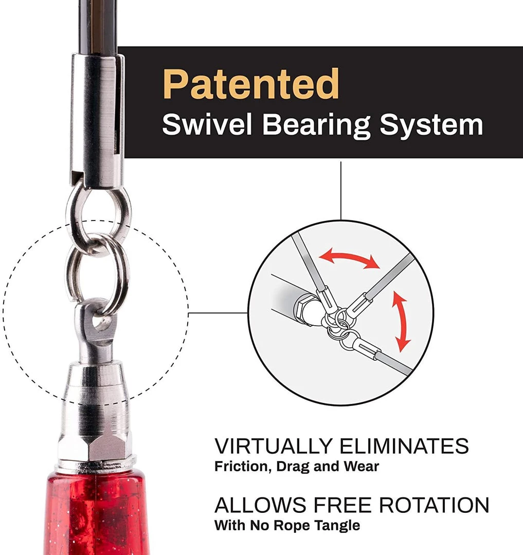 - Patented Swivel Bearing System technically engineered for eliminating friction, drag, tangling and allows smooth turning action in all directions.