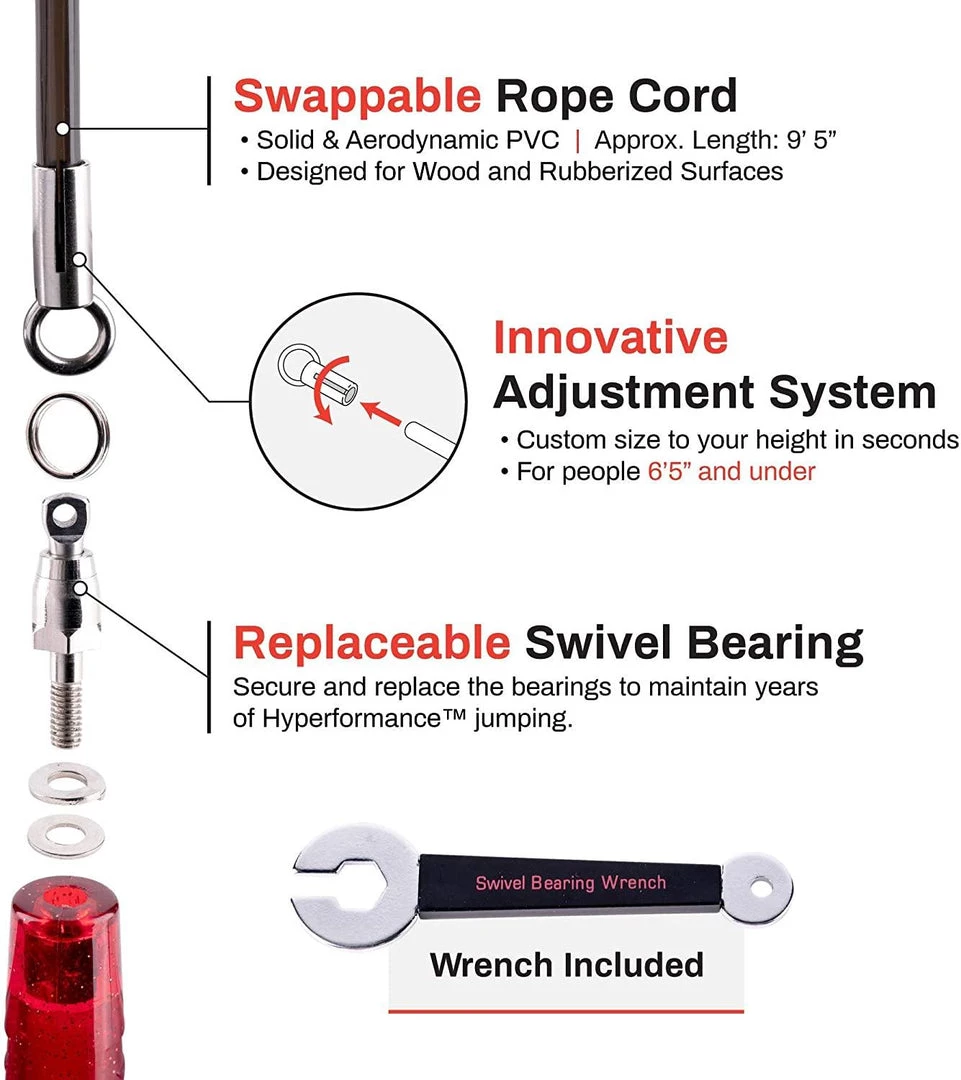 - Innovative Adjustment System allows you to custom size the rope for your height in seconds.
