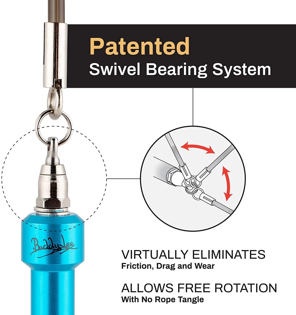 - Patented Swivel Bearing System technically engineered for eliminating friction, drag, tangling and allows smooth turning action in all directions.