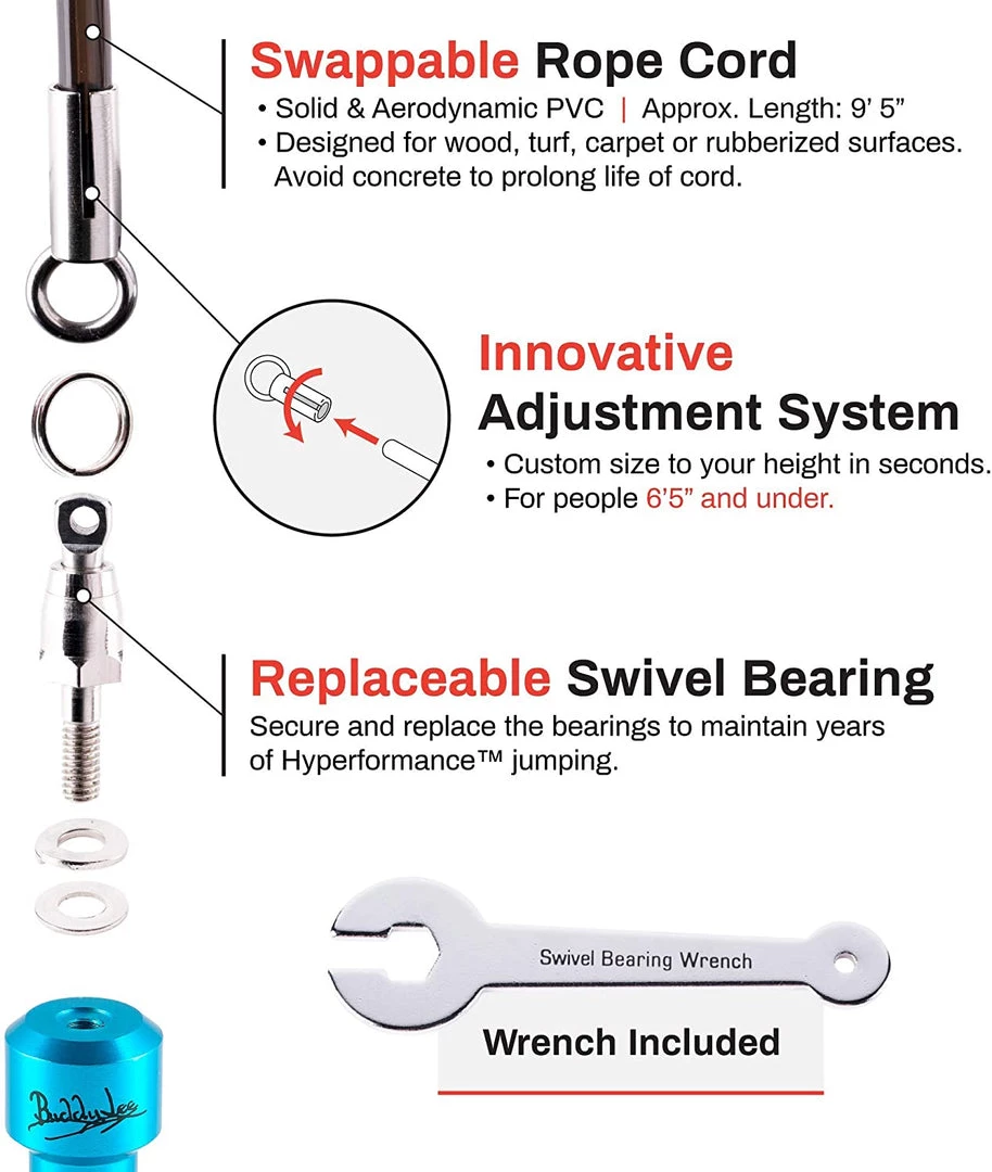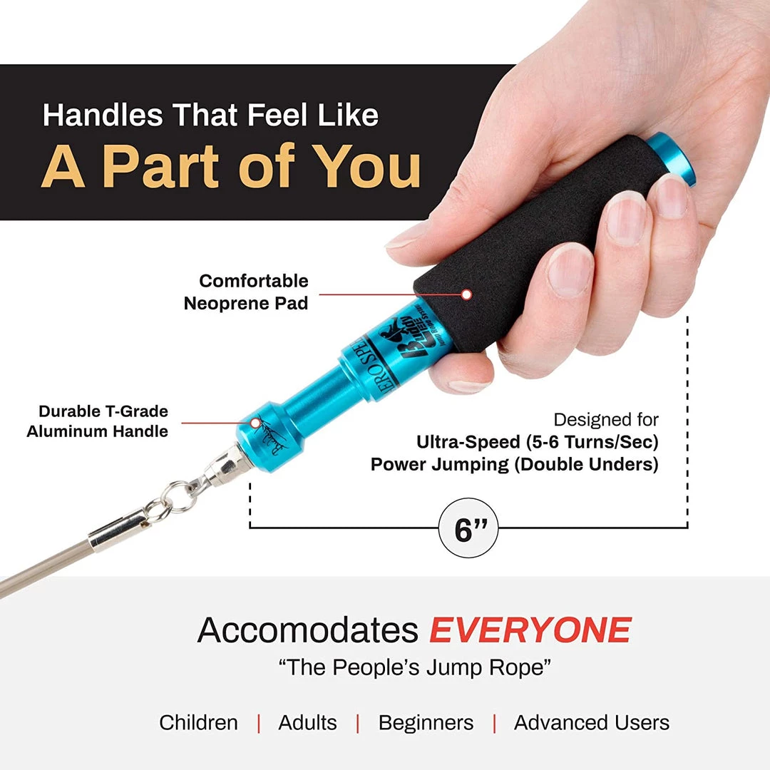 - Designed for ultra-speed (5-6 turns per second) and power jumping (double unders).
