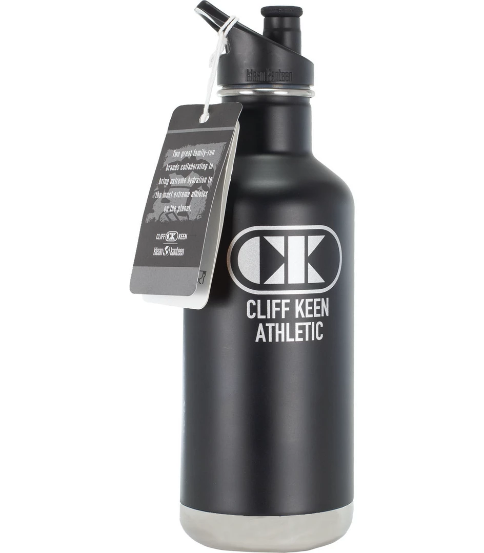 - Metallic Cliff Keen Athletic logo etched on side of bottle.