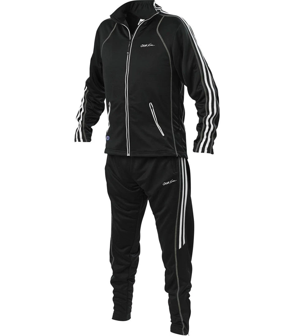 Jacket: The full-zip jacket features ergonomic panels that promote body movement, while contrasting stitching and white accent stripes provide for a great look.ย